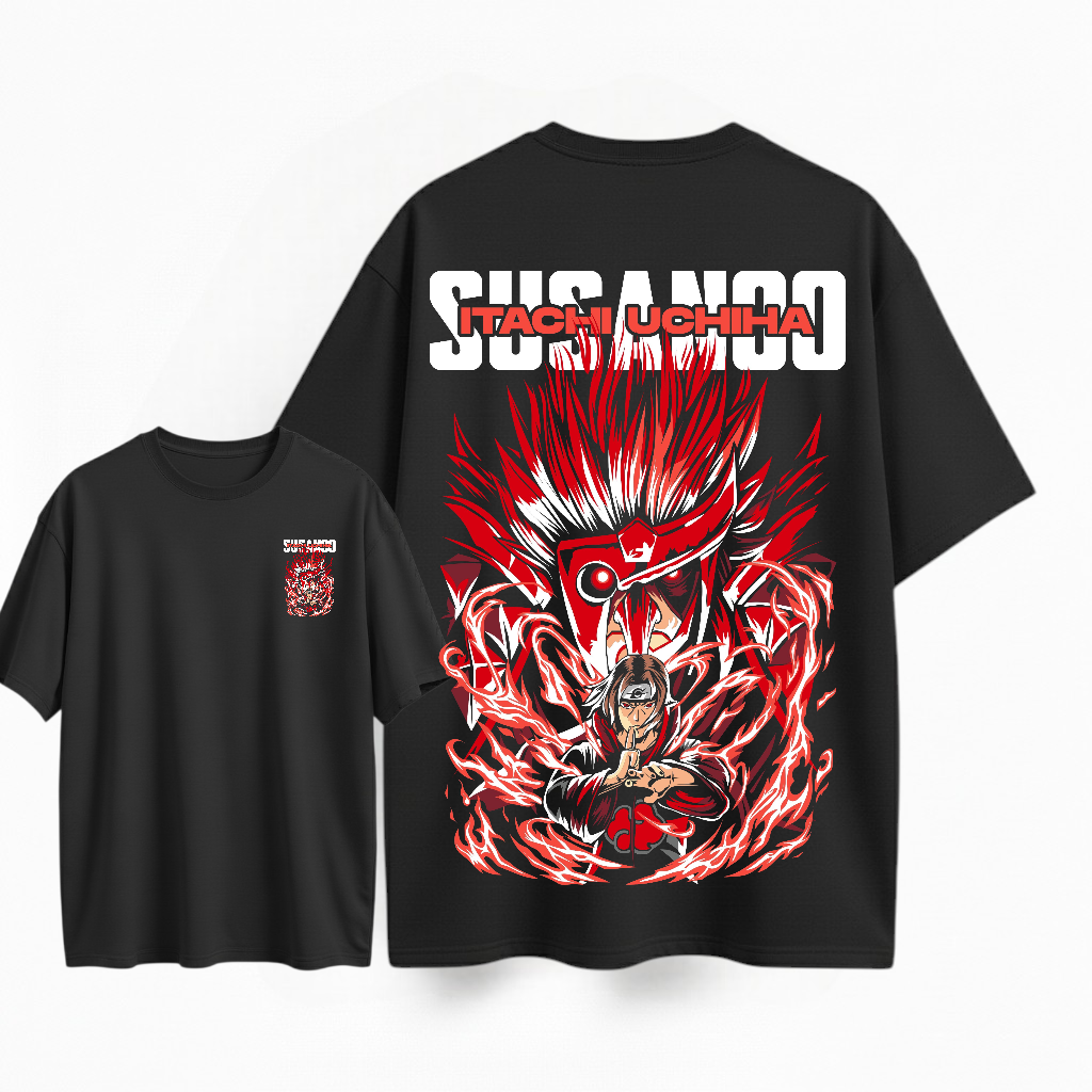 Camiseta manga corta oversize- color negro- estampado de Itachi